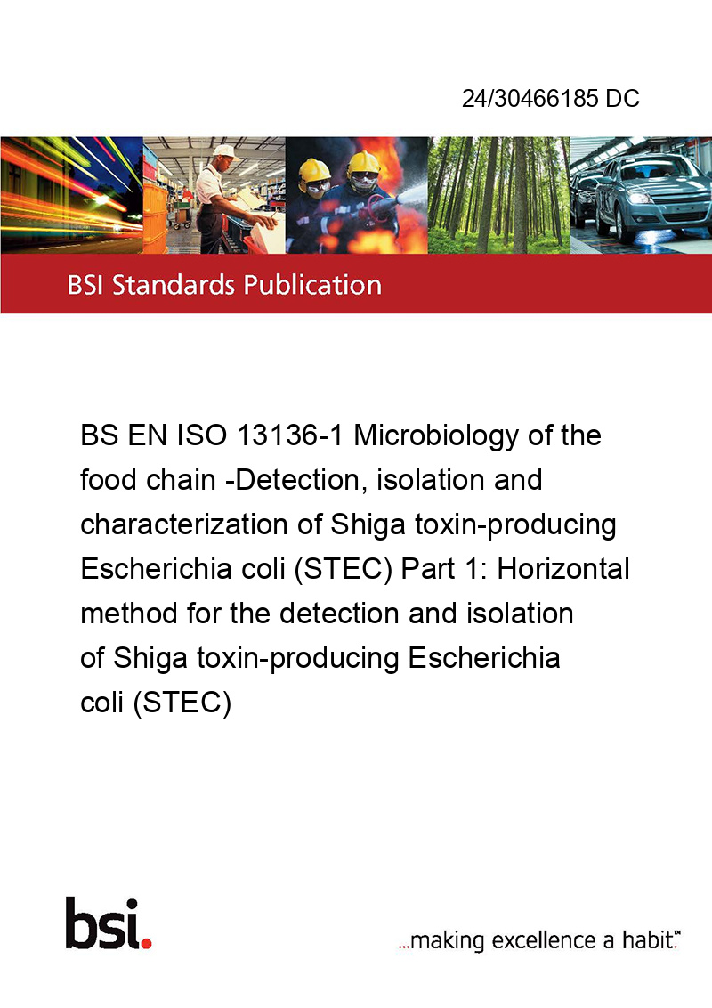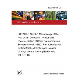 BS EN ISO 13136-1 Microbiology of the food chain -Detection, isolation and characterization of Shiga toxin-producing Escherichia coli (STEC) Part 1: Horizontal method for the detection and isolation of Shiga toxin-producing Escherichia coli (STEC)