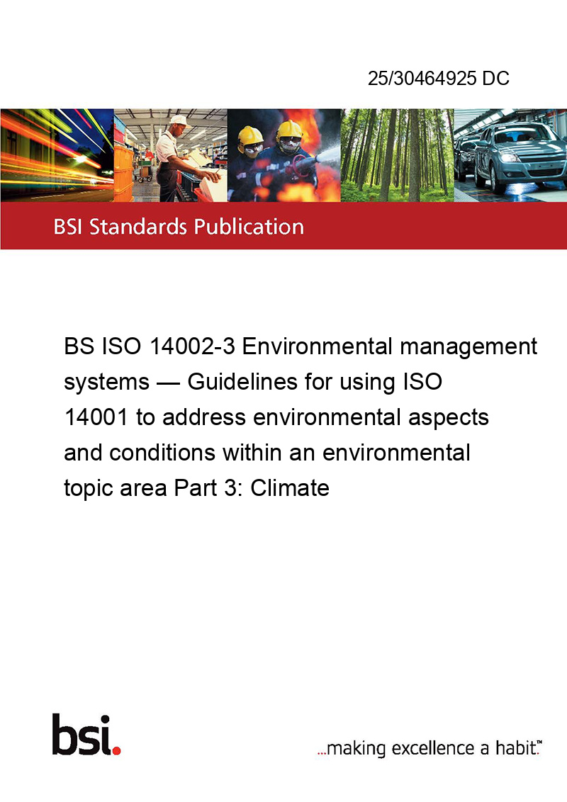 BS ISO 14002-3 Environmental management systems — Guidelines for using ISO 14001 to address environmental aspects and conditions within an environmental topic area Part 3: Climate