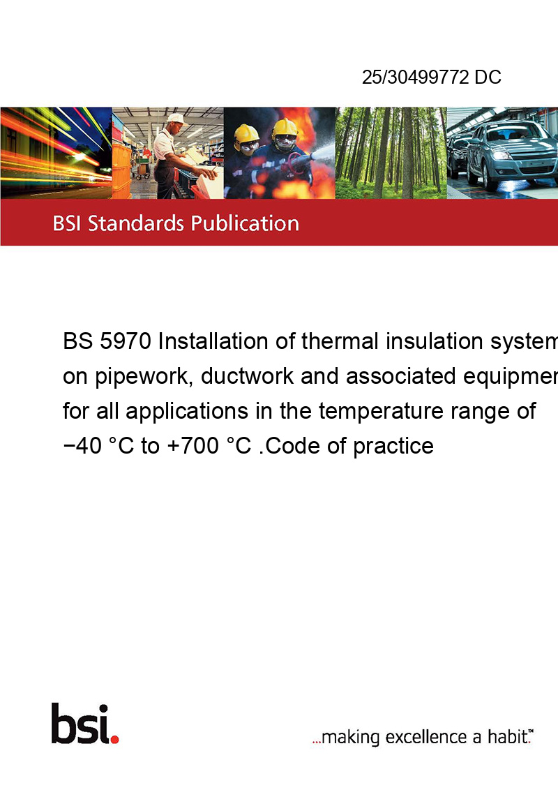 This standard 25/30499772 DC BS 5970 Installation of thermal insulation systems on pipework, ductwork and associated equipment for all applications in the temperature range of −40 °C to +700 °C .Code of practice is classified in these ICS categories: