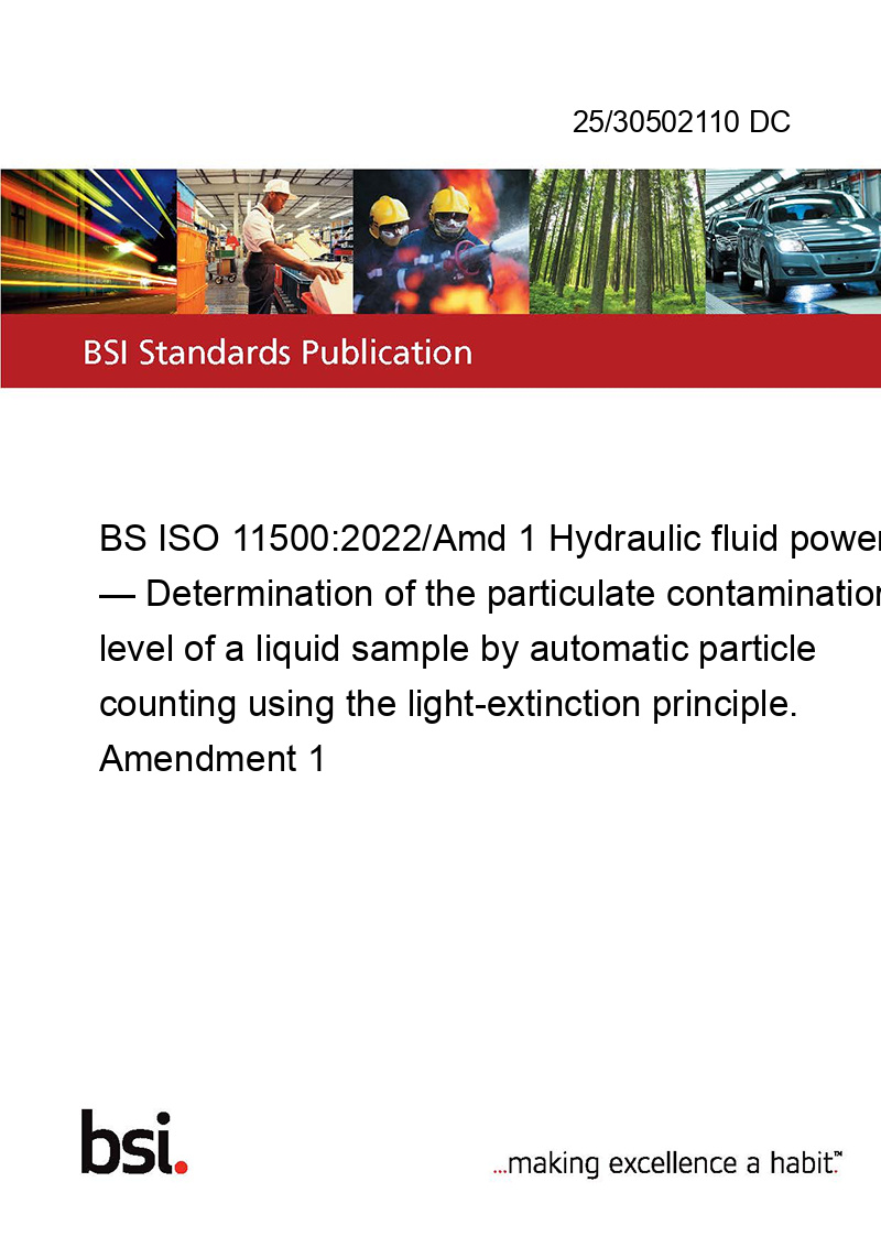 BS ISO 11500:2022/Amd 1 Hydraulic fluid power — Determination of the particulate contamination level of a liquid sample by automatic particle counting using the light-extinction principle. Amendment 1