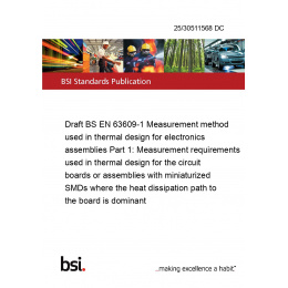 Draft BS EN 63609-1 Measurement method used in thermal design for electronics assemblies Part 1: Measurement requirements used in thermal design for the circuit boards or assemblies with miniaturized SMDs where the heat dissipation path to the board is dominant