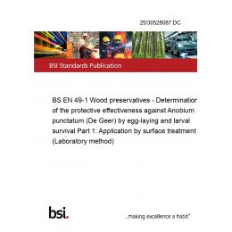 BS EN 49-1 Wood preservatives - Determination of the protective effectiveness against Anobium punctatum (De Geer) by egg-laying and larval survival Part 1: Application by surface treatment (Laboratory method)