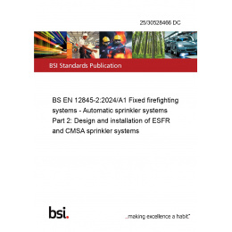 BS EN 12845-2:2024/A1 Fixed firefighting systems - Automatic sprinkler systems Part 2: Design and installation of ESFR and CMSA sprinkler systems