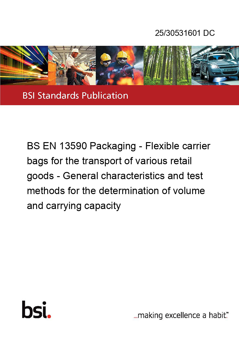This standard 25/30531601 DC BS EN 13590 Packaging - Flexible carrier bags for the transport of various retail goods - General characteristics and test methods for the determination of volume and carrying capacity is classified in these ICS categories: