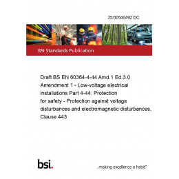 Draft BS EN 60364-4-44 Amd.1 Ed.3.0 Amendment 1 - Low-voltage electrical installations Part 4-44: Protection for safety - Protection against voltage disturbances and electromagnetic disturbances, Clause 443