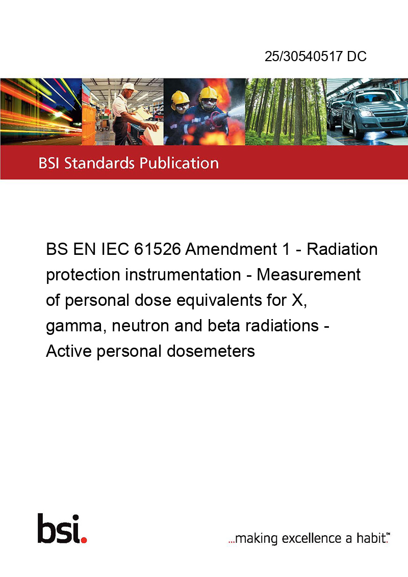 BS EN IEC 61526 Amendment 1 - Radiation protection instrumentation - Measurement of personal dose equivalents for X, gamma, neutron and beta radiations - Active personal dosemeters