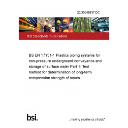 BS EN 17151-1 Plastics piping systems for non-pressure underground conveyance and storage of surface water Part 1: Test method for determination of long-term compression strength of boxes
