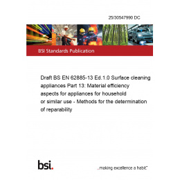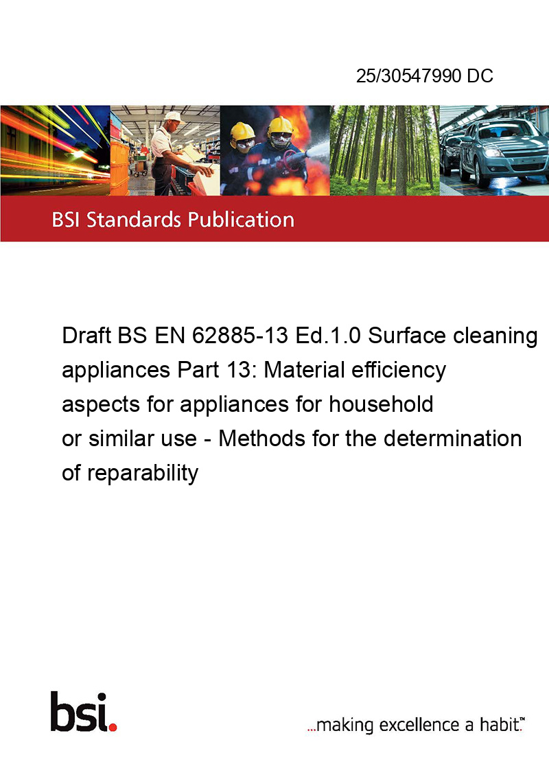 Draft BS EN 62885-13 Ed.1.0 Surface cleaning appliances Part 13: Material efficiency aspects for appliances for household or similar use - Methods for the determination of reparability