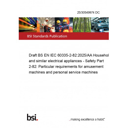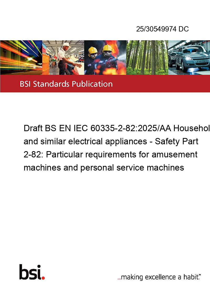 Draft BS EN IEC 60335-2-82:2025/AA Household and similar electrical appliances - Safety Part 2-82: Particular requirements for amusement machines and personal service machines