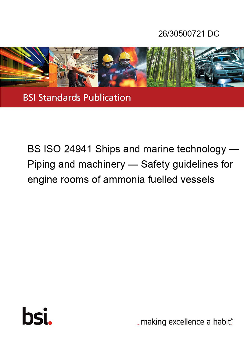 BS ISO 24941 Ships and marine technology — Piping and machinery — Safety guidelines for engine rooms of ammonia fuelled vessels