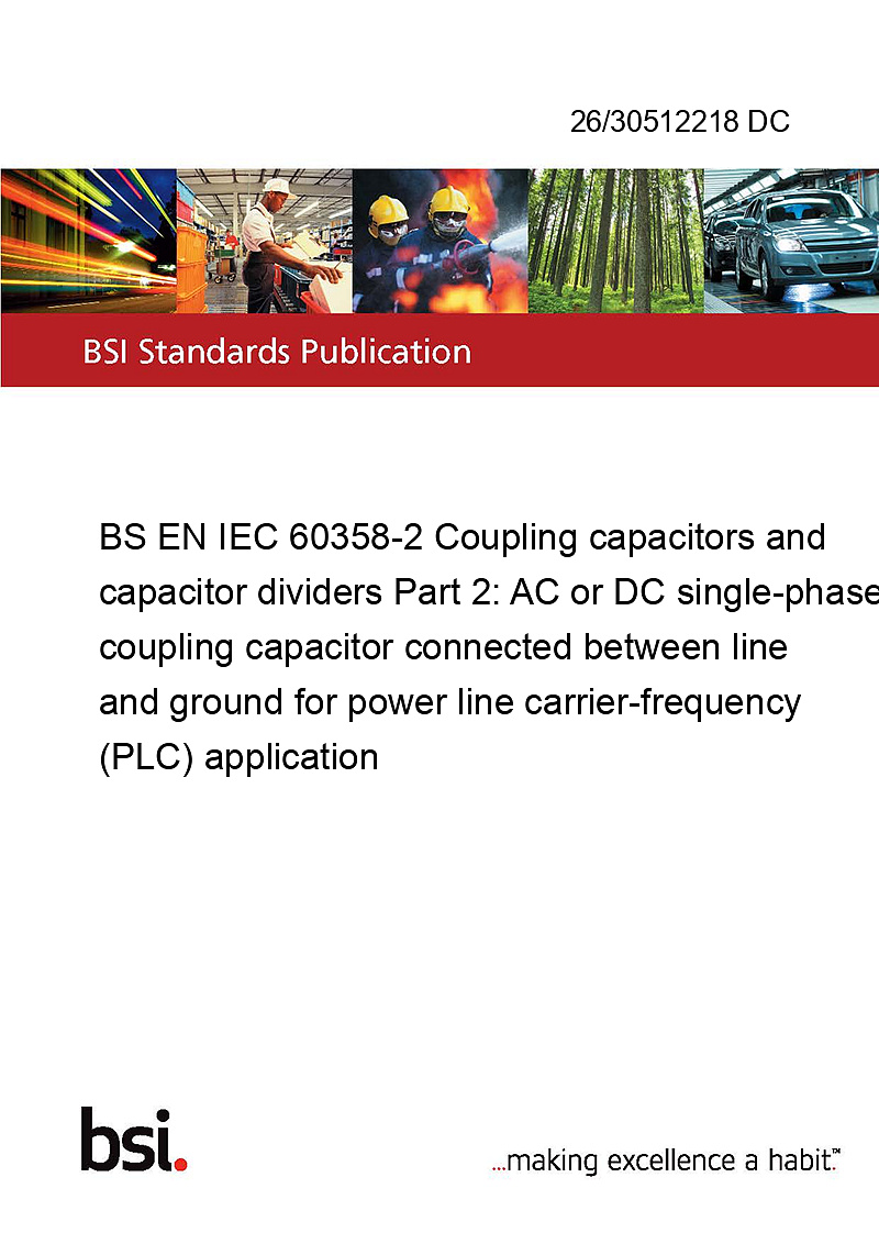 BS EN IEC 60358-2 Coupling capacitors and capacitor dividers Part 2: AC or DC single-phase coupling capacitor connected between line and ground for power line carrier-frequency (PLC) application