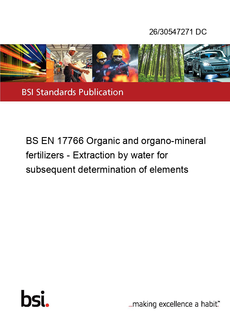 This standard 26/30547271 DC BS EN 17766 Organic and organo-mineral fertilizers - Extraction by water for subsequent determination of elements is classified in these ICS categories: