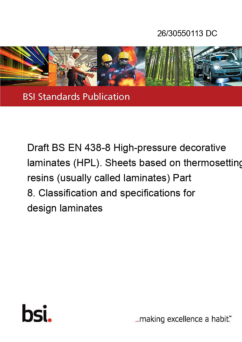 This standard 26/30550113 DC Draft BS EN 438-8 High-pressure decorative laminates (HPL). Sheets based on thermosetting resins (usually called laminates) is classified in these ICS categories: