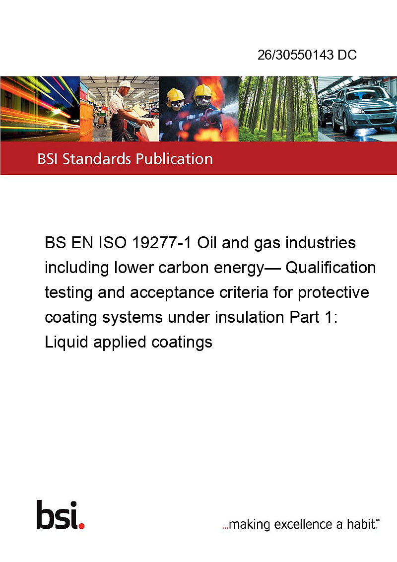 BS EN ISO 19277-1 Oil and gas industries including lower carbon energy— Qualification testing and acceptance criteria for protective coating systems under insulation Part 1: Liquid applied coatings