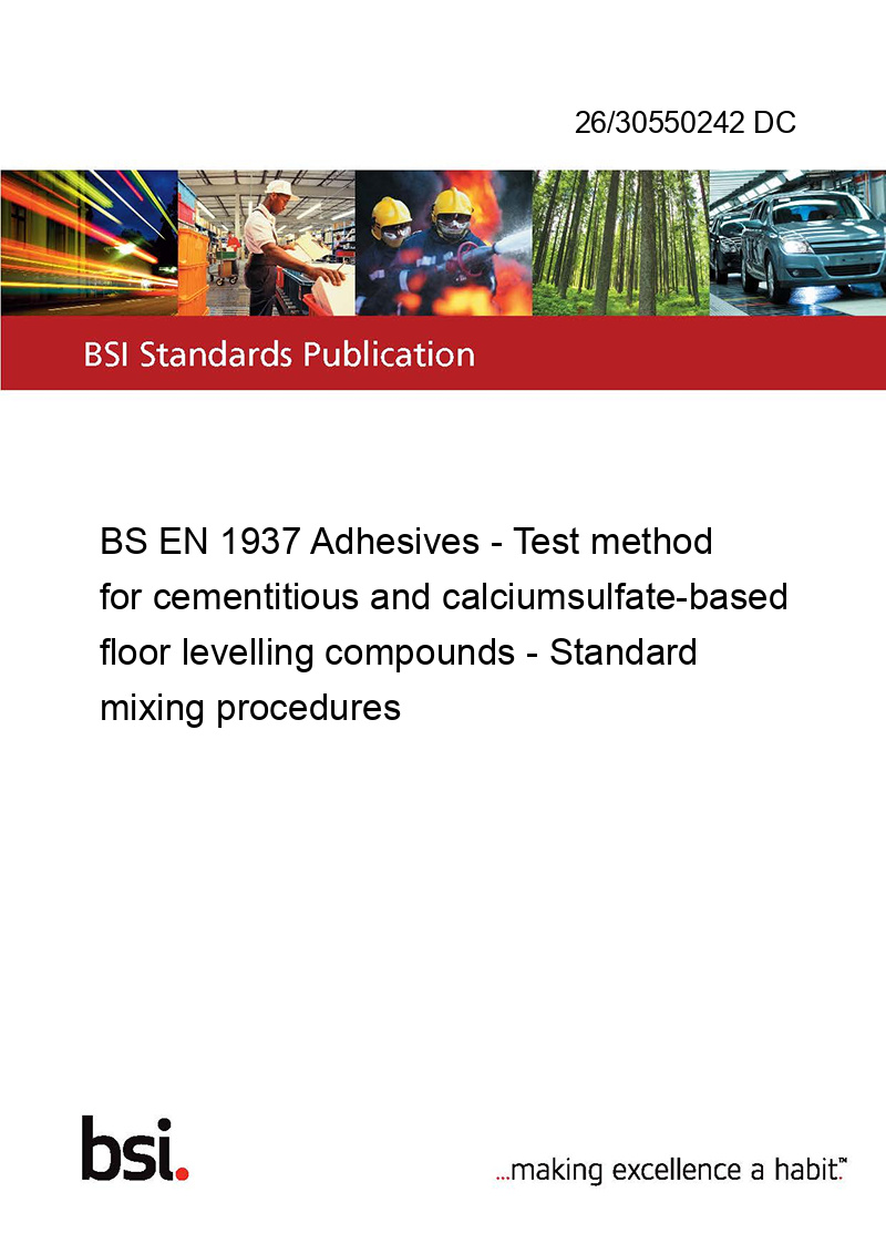 BS EN 1937 Adhesives - Test method for cementitious and calciumsulfate-based floor levelling compounds - Standard mixing procedures