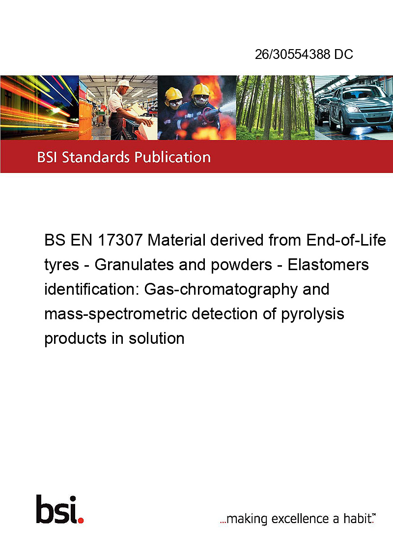 BS EN 17307 Material derived from End-of-Life tyres - Granulates and powders - Elastomers identification: Gas-chromatography and mass-spectrometric detection of pyrolysis products in solution