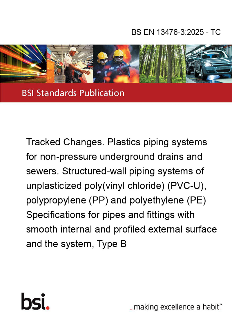 Tracked Changes. Plastics piping systems for non-pressure underground drains and sewers. Structured-wall piping systems of unplasticized poly(vinyl chloride) (PVC-U), polypropylene (PP) and polyethylene (PE) Specifications for pipes and fittings with smooth internal and profiled external surface and the system, Type B