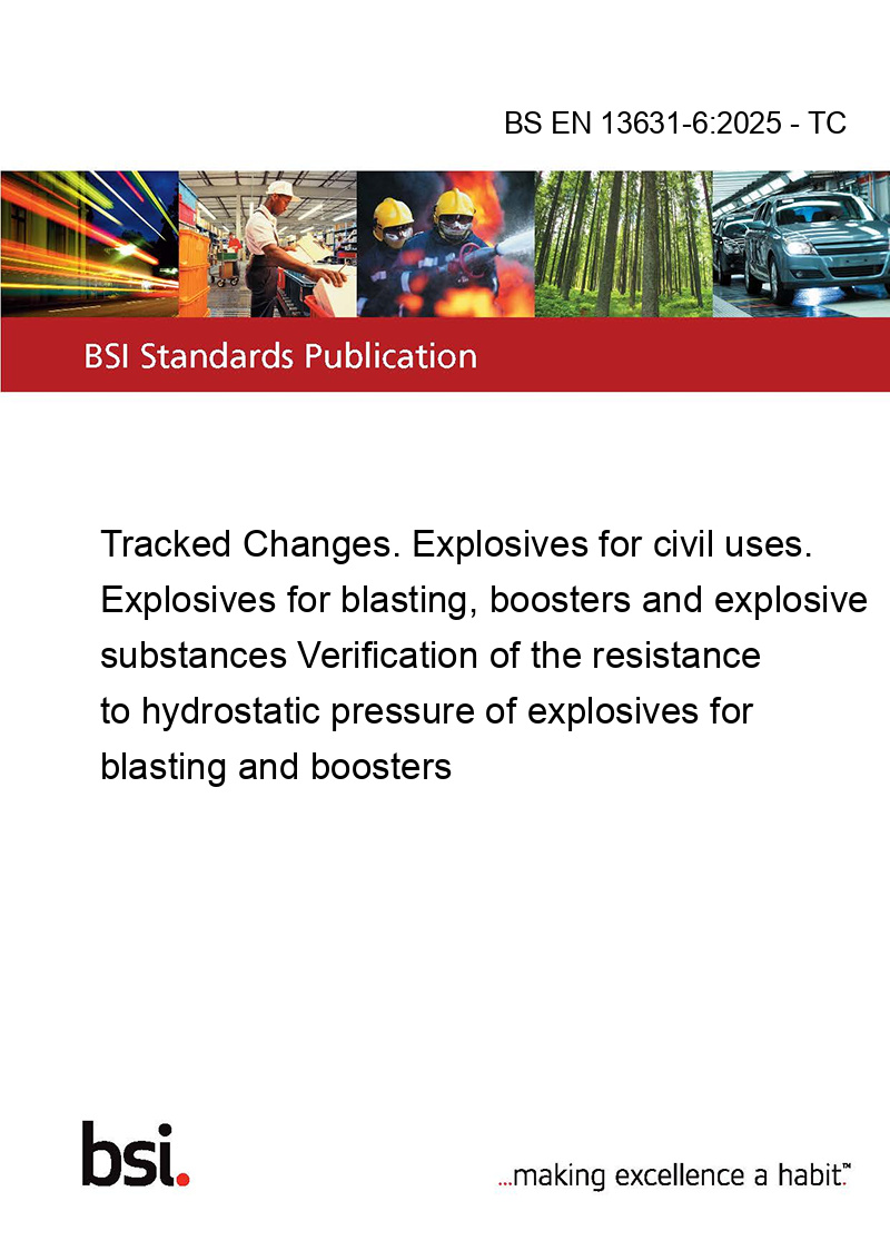 This standard BS EN 13631-6:2025 - TC Tracked Changes. Explosives for civil uses. Explosives for blasting, boosters and explosive substances is classified in these ICS categories: