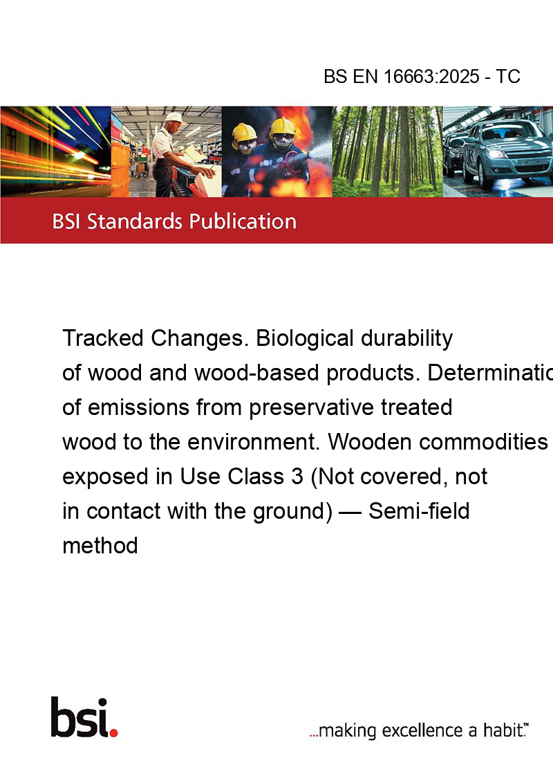 This standard BS EN 16663:2025 - TC Tracked Changes. Biological durability of wood and wood-based products. Determination of emissions from preservative treated wood to the environment. Wooden commodities exposed in Use Class 3 (Not covered, not in contact with the ground) — Semi-field method is classified in these ICS categories: