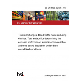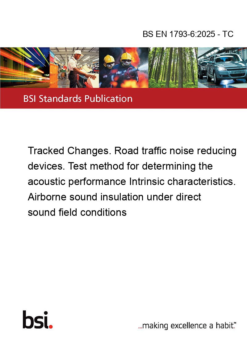 >BS EN 1793-6:2025 - TC Tracked Changes. Road traffic noise reducing devices. Test method for determining the acoustic performance Intrinsic characteristics. Airborne sound insulation under direct sound field conditions