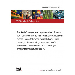 >BS EN 3381:2025 - TC Tracked Changes. Aerospace series. Screws, 100° countersunk normal head, offset cruciform recess, close tolerance normal shank, short thread, in titanium alloy, anodized, MoS2 lubricated. Classification: 1 100 MPa (at ambient temperature)/315 °C