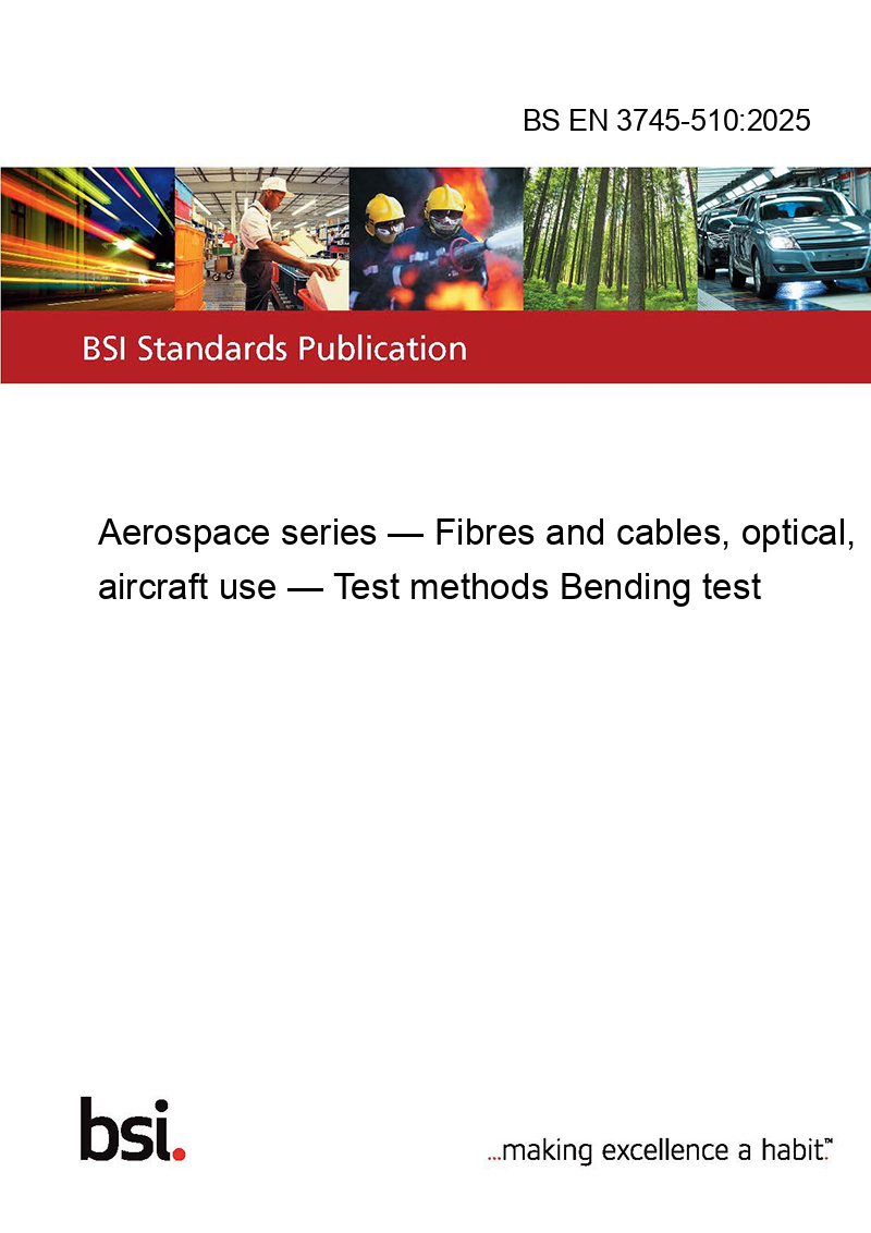 >BS EN 3745-510:2025 Aerospace series — Fibres and cables, optical, aircraft use — Test methods Bending test