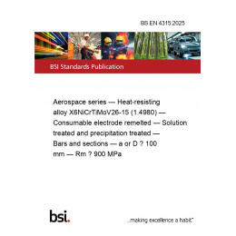 >BS EN 4315:2025 Aerospace series — Heat-resisting alloy X6NiCrTiMoV26-15 (1.4980) — Consumable electrode remelted — Solution treated and precipitation treated — Bars and sections — a or D ? 100 mm — Rm ? 900 MPa