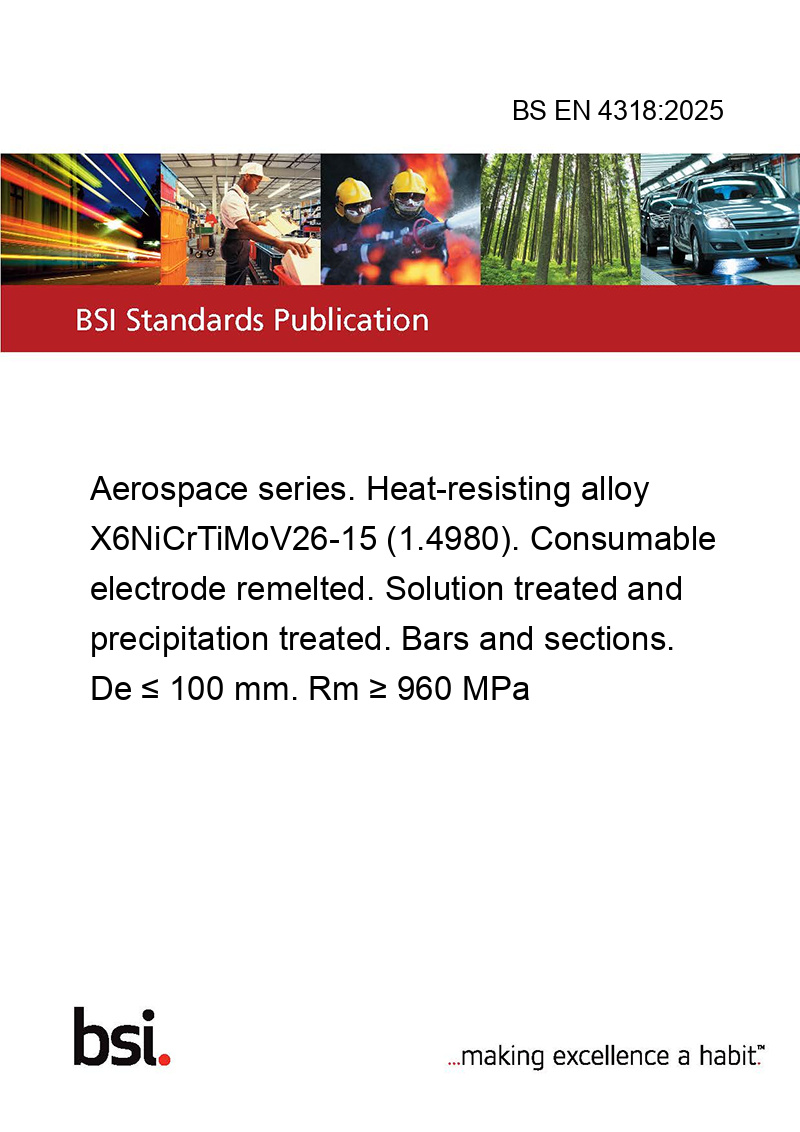 This standard BS EN 4318:2025 Aerospace series. Heat-resisting alloy X6NiCrTiMoV26-15 (1.4980). Consumable electrode remelted. Solution treated and precipitation treated. Bars and sections. De ≤ 100 mm. Rm ≥ 960 MPa is classified in these ICS categories: