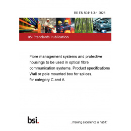 >BS EN 50411-3-1:2025 Fibre management systems and protective housings to be used in optical fibre communication systems. Product specifications Wall or pole mounted box for splices, for category C and A