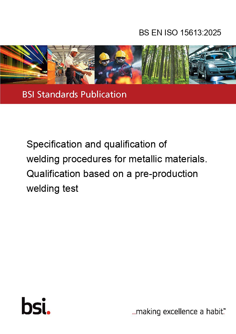This standard BS EN ISO 15613:2025 Specification and qualification of welding procedures for metallic materials. Qualification based on a pre-production welding test is classified in these ICS categories: