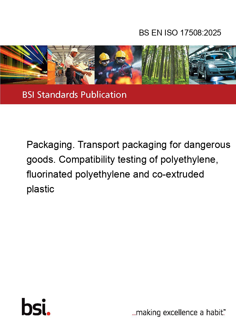 This standard BS EN ISO 17508:2025 Packaging. Transport packaging for dangerous goods. Compatibility testing of polyethylene, fluorinated polyethylene and co-extruded plastic is classified in these ICS categories:
