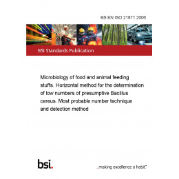 This standard BS EN ISO 21871:2006 Microbiology of food and animal feeding stuffs. Horizontal method for the determination of low numbers of presumptive Bacillus cereus. Most probable number technique and detection method is classified in these ICS categories: