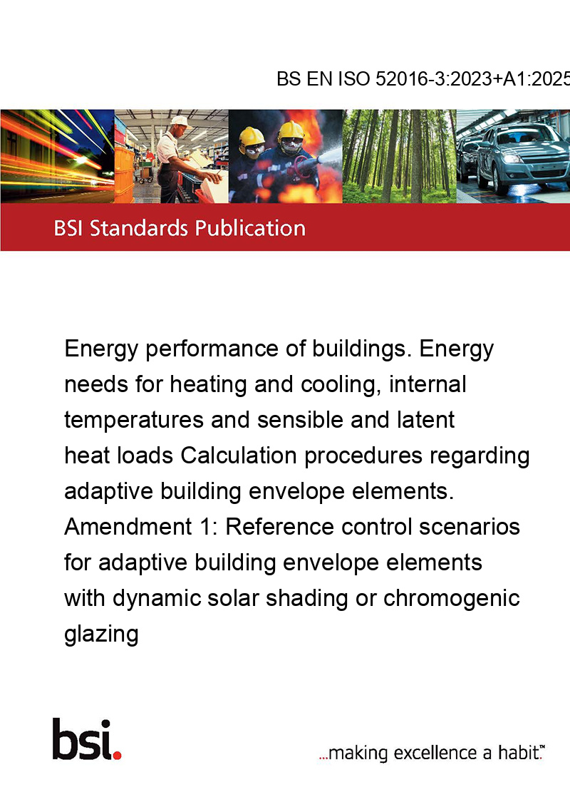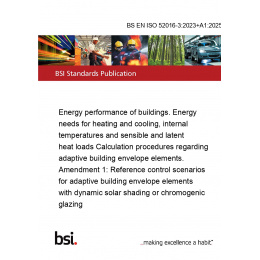 Energy performance of buildings. Energy needs for heating and cooling, internal temperatures and sensible and latent heat loads Calculation procedures regarding adaptive building envelope elements. Amendment 1: Reference control scenarios for adaptive building envelope elements with dynamic solar shading or chromogenic glazing