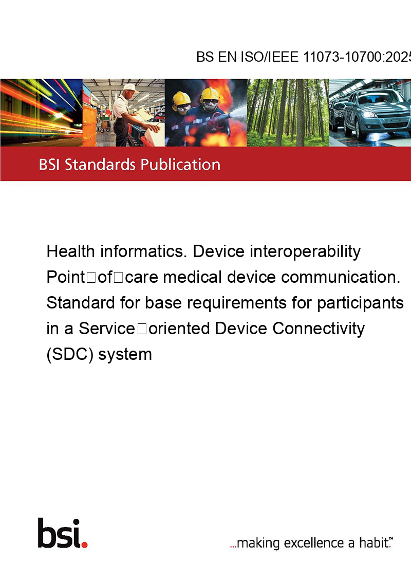 Health informatics. Device interoperability Point‐of‐care medical device communication. Standard for base requirements for participants in a Service‐oriented Device Connectivity (SDC) system