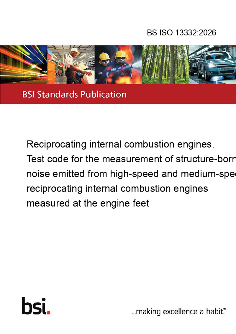 This standard BS ISO 13332:2026 Reciprocating internal combustion engines. Test code for the measurement of structure-borne noise emitted from high-speed and medium-speed reciprocating internal combustion engines measured at the engine feet is classified in these ICS categories: