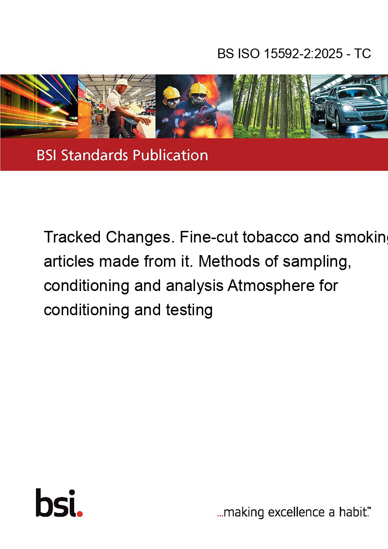 This standard BS ISO 15592-2:2025 - TC Tracked Changes. Fine-cut tobacco and smoking articles made from it. Methods of sampling, conditioning and analysis is classified in these ICS categories: