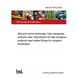 This standard BS ISO 18742:2026 Ship and marine technology. High-manganese austenitic steel. Specification for high-manganese austenitic steel welded fittings for cryogenic temperature is classified in these ICS categories: