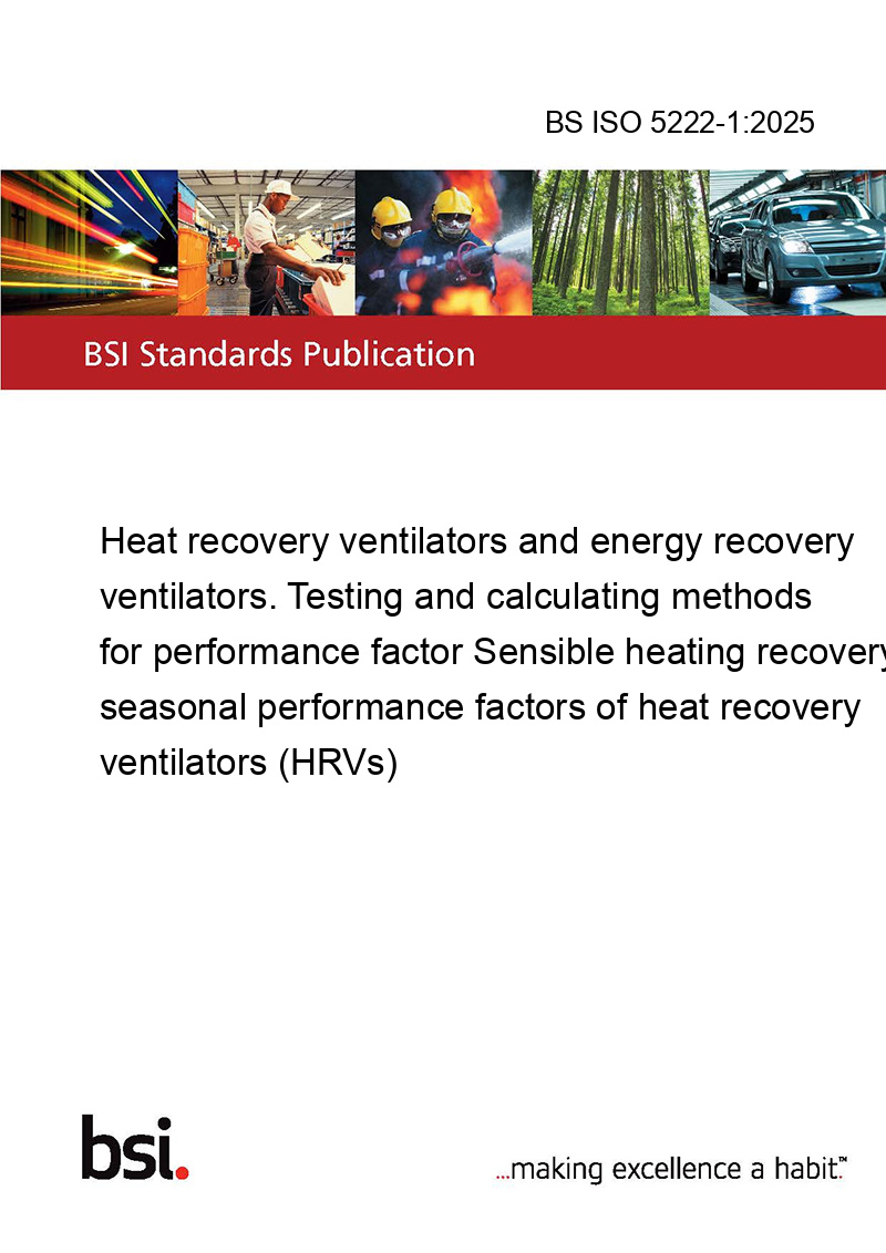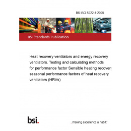 This standard BS ISO 5222-1:2025 Heat recovery ventilators and energy recovery ventilators. Testing and calculating methods for performance factor is classified in these ICS categories: