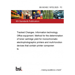 This standard BS ISO/IEC 19752:2025 - TC Tracked Changes. Information technology. Office equipment. Method for the determination of toner cartridge yield for monochromatic electrophotographic printers and multi-function devices that contain printer components is classified in these ICS categories: