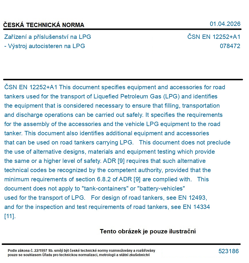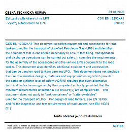 This document specifies equipment and accessories for road tankers used for the transport of Liquefied Petroleum Gas (LPG) and identifies the equipment that is considered necessary to ensure that filling, transportation and discharge operations can be carried out safely. It specifies the requirements for the assembly of the accessories and the vehicle LPG equipment to the road tanker. This document also identifies additional equipment and accessories that can be used on road tankers carrying LPG. This document does not preclude the use of alternative designs, materials and equipment testing which provide the same or a higher level of safety. ADR [9] requires that such alternative technical codes be recognized by the competent authority, provided that the minimum requirements of section 6.8.2 of ADR [9] are complied with. This document does not apply to "tank-containers" or "battery-vehicles" used for the transport of LPG. For design of road tankers, see EN 12493, and for the inspection and test requirements of road tankers, see EN 14334 [11].