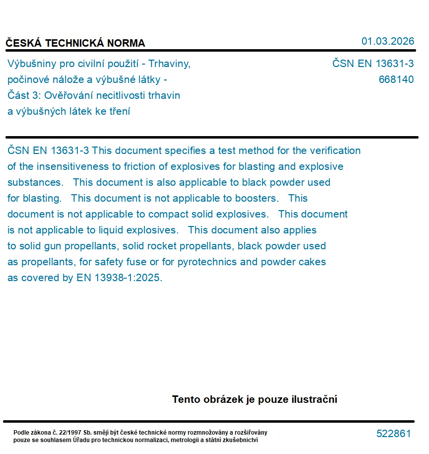 Výbušniny pro civilní použití - Trhaviny, počinové nálože a výbušné látky - Část 3: Ověřování necitlivosti trhavin a výbušných látek ke tření