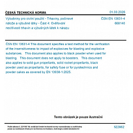 Výbušniny pro civilní použití - Trhaviny, počinové nálože a výbušné látky - Část 4: Ověřování necitlivosti trhavin a výbušných látek k nárazu