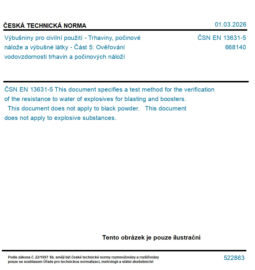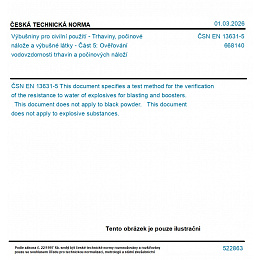Výbušniny pro civilní použití - Trhaviny, počinové nálože a výbušné látky - Část 5: Ověřování vodovzdornosti trhavin a počinových náloží