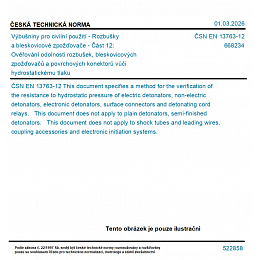 Výbušniny pro civilní použití - Rozbušky a bleskovicové zpožďovače - Část 12: Ověřování odolnosti rozbušek, bleskovicových zpožďovačů a povrchových konektorů vůči hydrostatickému tlaku