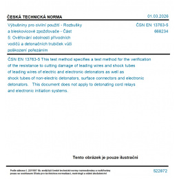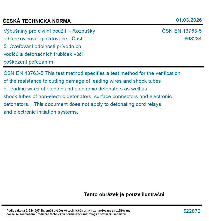 Výbušniny pro civilní použití - Rozbušky a bleskovicové zpožďovače - Část 5: Ověřování odolnosti přívodních vodičů a detonačních trubiček vůči poškození pořezáním