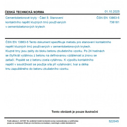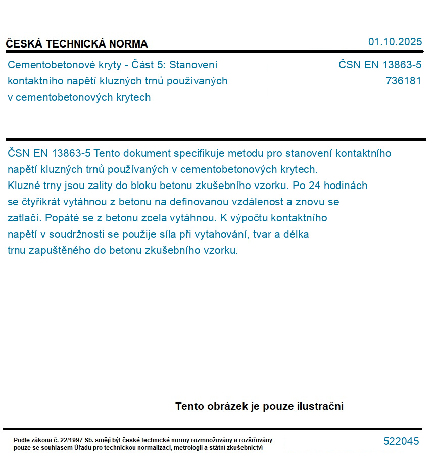 Cementobetonové kryty - Část 5: Stanovení kontaktního napětí kluzných trnů používaných v cementobetonových krytech