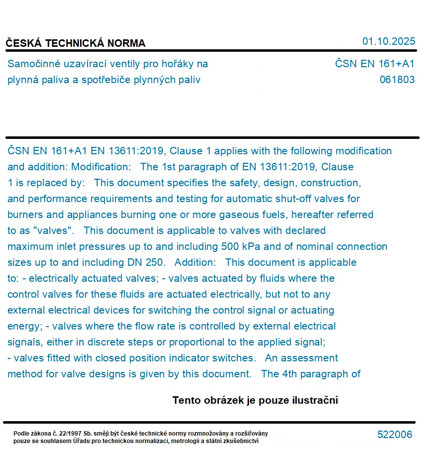 S účinností od 2028-04-30 se nahrazuje ČSN EN 161 (06 1803) z května 2023, která do uvedeného data platí souběžně s touto normou.