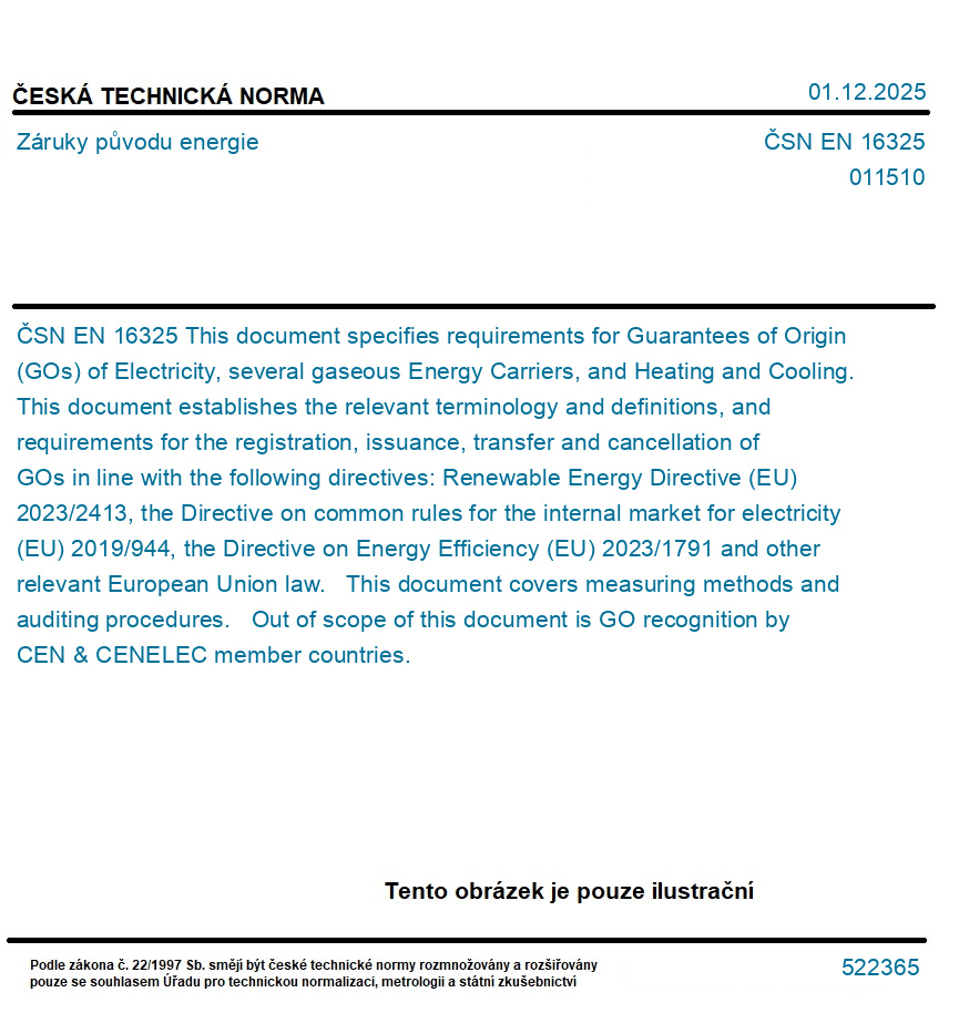 >ČSN EN 16325 - Záruky původu energie