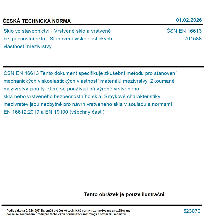 Sklo ve stavebnictví - Vrstvené sklo a vrstvené bezpečnostní sklo - Stanovení viskoelastických vlastností mezivrstvy
