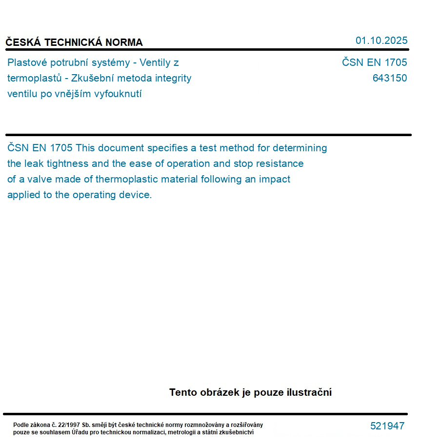 Plastové potrubní systémy - Ventily z termoplastů - Zkušební metoda integrity ventilu po vnějším vyfouknutí